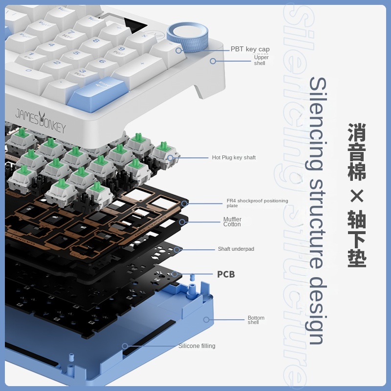 James donkey RS2 3.0 wireless mechanical keyboard gateway structure Bluetooth hot plug customized display