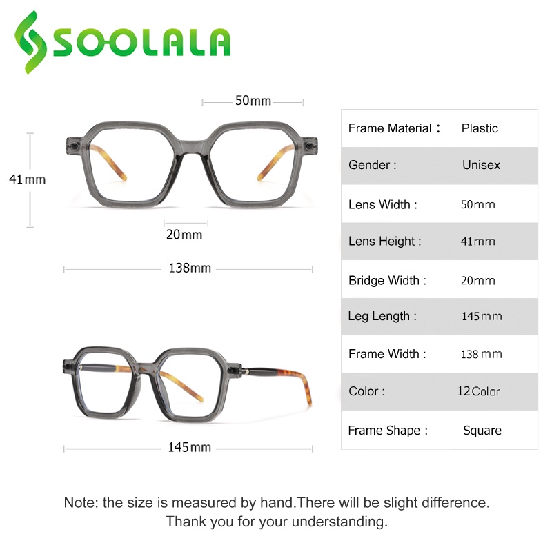 Thời gian giao hàng dự kiến cho sản phẩm này là từ 7-9 ngày Chào mừng bạn đến với SOLALA. Solala là thương hiệu kính mắt chuyên nghiệp đạt chứng nhận FDA, và thử nghiệm thả bóng của IRC. Không chỉ là kính mắt, SOLALA mang đến cho bạn thế giới tươi đẹp và trong sáng ”.Chúng tôi bán kính đọc sách. Kính ánh sáng xanh, Kính gọng, Kính mát, v.v. Nếu bạn có bất kỳ yêu cầu nào, vui lòng liên hệ với chúng tôi ') Mô tả ' Kính đọc sách SOOLALA gọng vuông màu cầu vồng chống ánh sáng xanh cho nữ - độ viễn +0.5 1.0 đến 4.0. -Khung màu vuông chất lượng cao và thấu kính rõ ràng -Kính viễn +0,5 0,75 1,0 1,25 1,5 1,75 2,0 2,25 2,5 2,75 3,0 3,5 4,0 -Màu sắc và số lượng khác nhau có thể lựa chọn -Ống kính chống ánh sáng xanh sẽ bảo vệ tốt đôi mắt của bạn -Thời trang. tiện lợi. hàng thiết yếu lão thị -Lựa chọn quà tặng tốt nhất cho tất cả phụ nữ -Chiều rộng tròng kính ' 50mm '1,97in. chiều cao ' 41mm '1,61in. cầu nối ' 20mm '0,79in, chiều dài bàn chân ' 145mm '5,71in. tổng chiều rộng ' 138mm-5,43in - Bền. nhẹ. Thiết kế khung vuông thời trang, chất lượng sản phẩm cao cấp với giá bán thấp -Với vải lau sạch và túi đựng có thương hiệu "SOOLAALA " -Kính Này là thấu kính có thể thay thế
