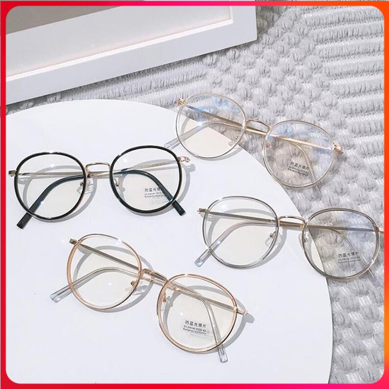 Mắt kính chống bức xạ máy tính gọng tròn bằng kim loại thời trang Hàn Quốc cho nam và nữ