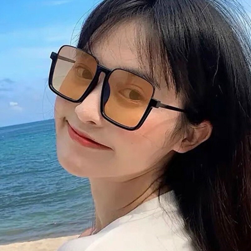 Kính gọng nhựa vuông màu cam form ôm thời trang phong cách Hàn Quốc