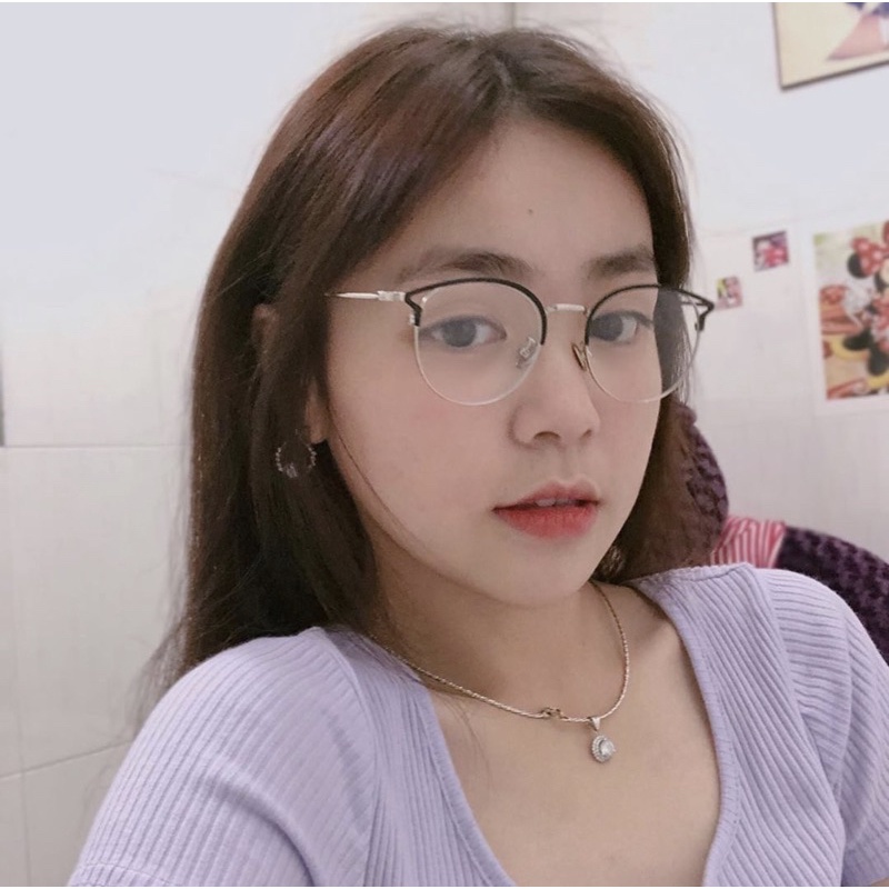 Kính giả cận,kính tai mèo dáng bầu nhựa dẻo phối kim loại tròng ánh sáng xanh bluecut