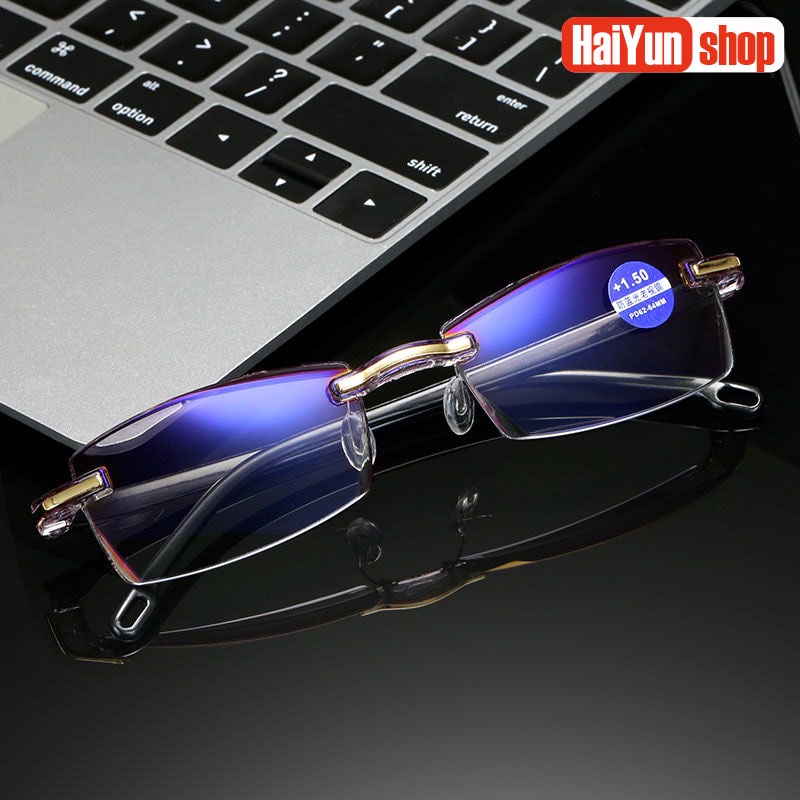 Kính lão viễn thị gấp gọn + 0.5 ~ + 4.00 gọng kim loại sang trọng bao gồm bao da khăn lau