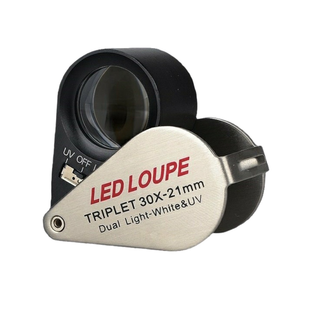 Kính lúp 30x móc khóa cao cấp gập mở tiện dụng, có đèn led siêu sáng