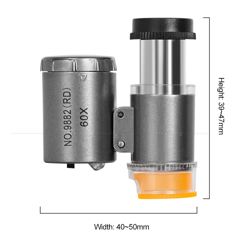 Kính lúp mini bỏ túi 40X 25mm có đèn LED chiếu sáng và hộp đựng nhựa tiện lợi
