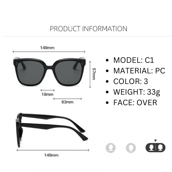 THÔNG TIN SẢN PHẨM - Tên sản phẩm: Kính mát thời trang - Chất liệu gọng: Nhựa - Chiều rộng tròng kính: 56mm - Chiều cao tròng kính: 55mm - Khoảng cách mũi: 12 mm - Dùng khi: Đi chơi, du lịch, dã ngoại, phượt, …. - Màu sắc: Đen - Trắng SỬ DỤNG: - Kính sử dụng khi đi