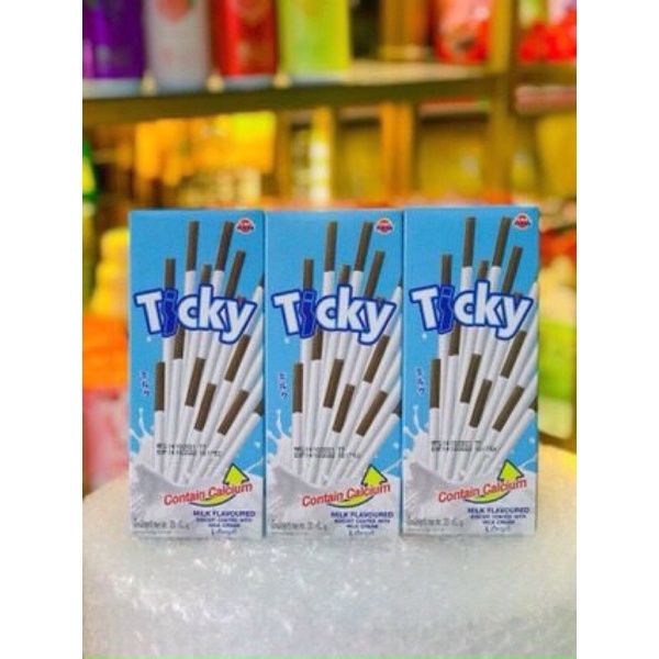 Không giống như những sản phẩm thông thường, Bánh que hương dâu Ticky Uni Firms được làm dưới dạng hình chiếc que rất độc đáo. Với kiểu dáng này, người dùng sẽ có những trải nghiệm mới về dòng bánh que. Bánh que hương dâu Ticky Uni Firms được đóng hộp tiện lợi, phù hợp với khẩu vị của các bạn trẻ yêu thích vị hương vị của dâu giòn rụm. Sản phẩm còn là món ăn cho những bữa tiệc nhẹ, dịp sinh nhật, tụ họp bạn bè, xem phim thêm thú vị. 1 lốc 12 hộp bánh que Ticky Thái Lan (hộp 22gram) Bánh que Ticky nhập khẩu từ Thái Lan, được sản xuất theo công nghệ hiện đại đảm bảo an toàn cho sức khỏe người tiêu dùng. Sản phẩm có hương vị thơm ngon của những nguyên liệu tự nhiên được chọn lọc kỹ càng, sẽ mang lại cho bạn những phút giải trí và thưởng thức thật tuyệt vời bên cạnh bạn bè hoặc người thân. Dạng que giòn tan, bọc bên ngoài một lớp kem dâu hoặc kem sữa chocolate béo ngậy, thơm ngon. Bánh giàu dinh dưỡng và tốt cho sức khỏe. Là món ăn vặt được cả trẻ nhỏ và người lớn ưa thích. Đóng hộp nhỏ gọn, giữ trọn vẹn độ giòn thơm của bánh, tiện lợi khi sử dụng. Xuất xứ: Thái Lan. Quy cách: 22g/1 hộp, 1 lốc 13 hộp Hạn sử dụng: 12 tháng in trên bao bì Bánh có 3 vị: socola, dâu, sữa