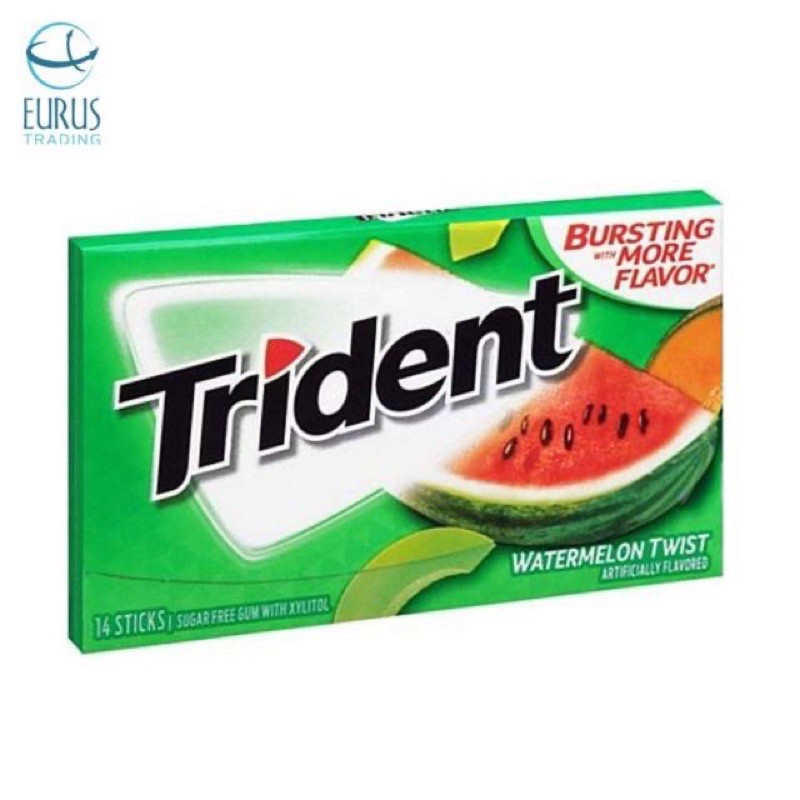 Kẹo cao su Trident: Kẹo cao su Trident vị dưa hấu, cam, quế,.. ngọt ngào, quyến rũ, giúp bạn tỉnh táo làm việc, ngoài ra kẹo cao su Mỹ Trident được làm từ xylitol hoàn toàn không có đường nên không sợ béo, không sợ sâu răng mà ngược lại còn giúp làm sạch răng miệng và