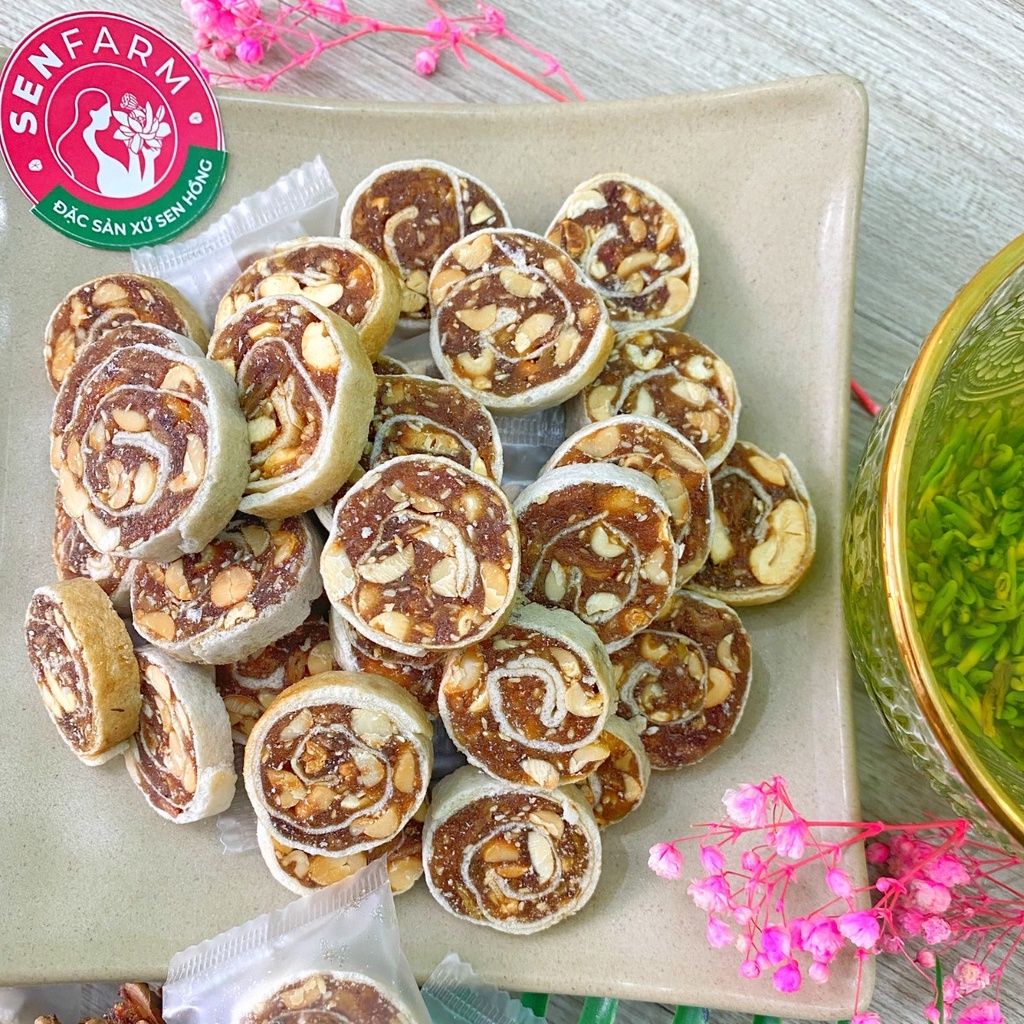 Kẹo chuối Hạt Điều cuộn bánh tráng Senfarm ít đường bịch 500g
