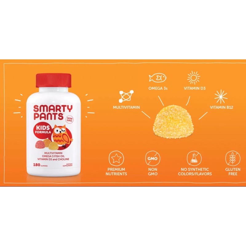 Kẹo dẻo Smarty Pants Vitamin tổng hợp của mỹ 180viên 🍀Công dụng: •Hoàn toàn độc đáo ở chỗ chứa tất cả các chất dinh dưỡng cao cấp,ngon miệng trong 1 gói Tăng sức đề kháng cao cho bé ✅🐣Dầu cá #omega3,chất #DHA giúp bé phát triển trí thông minh và tăng cường thị lực