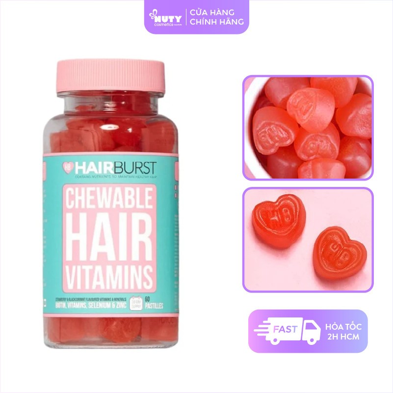 Kẹo dẻo vitamin chăm sóc, kích thích mọc tóc HAIRBURST chewable hair vitamins 60 viên/1 lọ