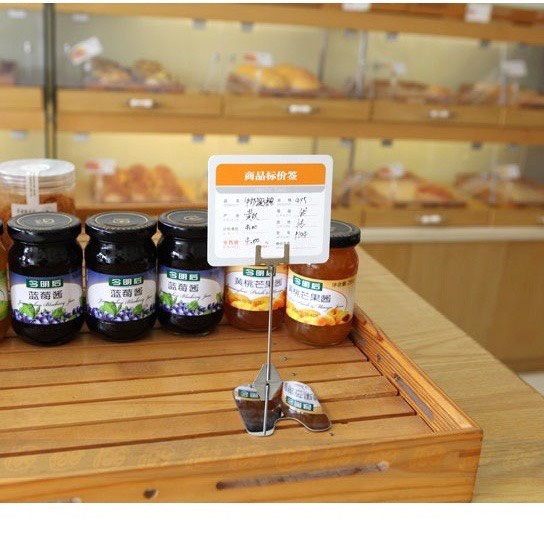 Kẹp để bàn inox chuyên để quầy bánh ngọt, bánh gato, quầy thức ăn chín cao 10cm thép không gỉ, kẹp wobbler để bàn