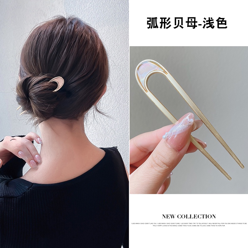 Kẹp tóc đơn giản hình chữ U bằng kim loại phong cách cổ điển
