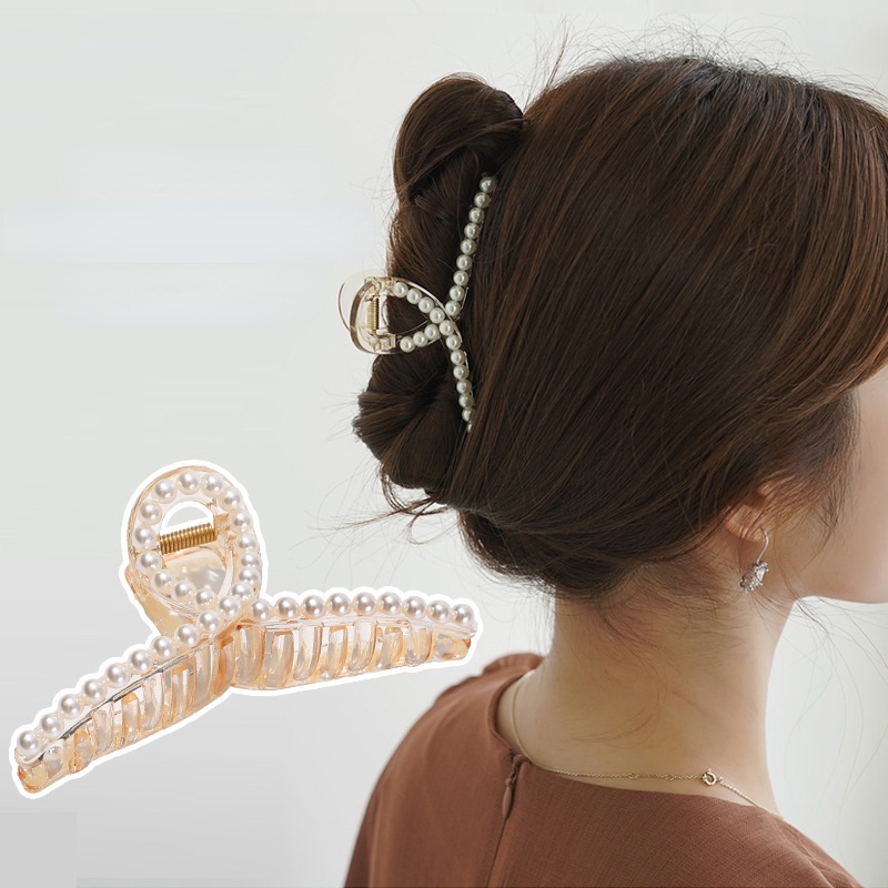 Kẹp tóc cá mập đính ngọc trai nhân tạo thời trang cho nữ