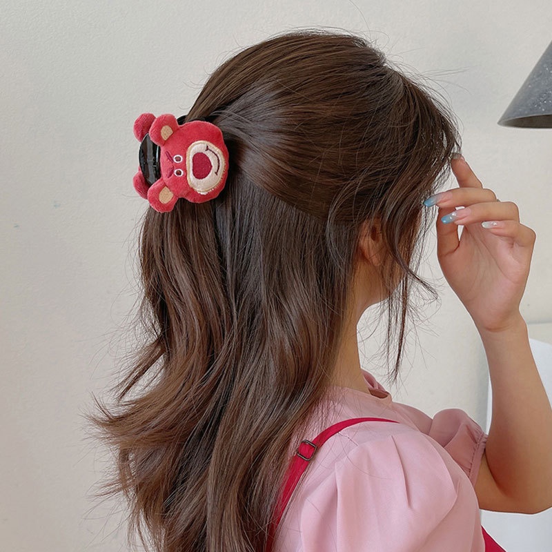 Kẹp tóc gắn thú nhồi bông hình Gấu Lotso dễ thương phong cách Hàn Quốc