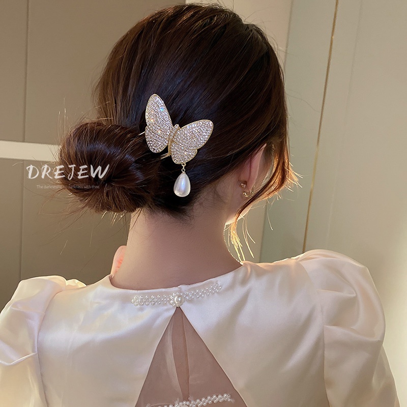 Kẹp Tóc Hình Bướm Đính Ngọc Trai Lấp Lánh Sang Trọng