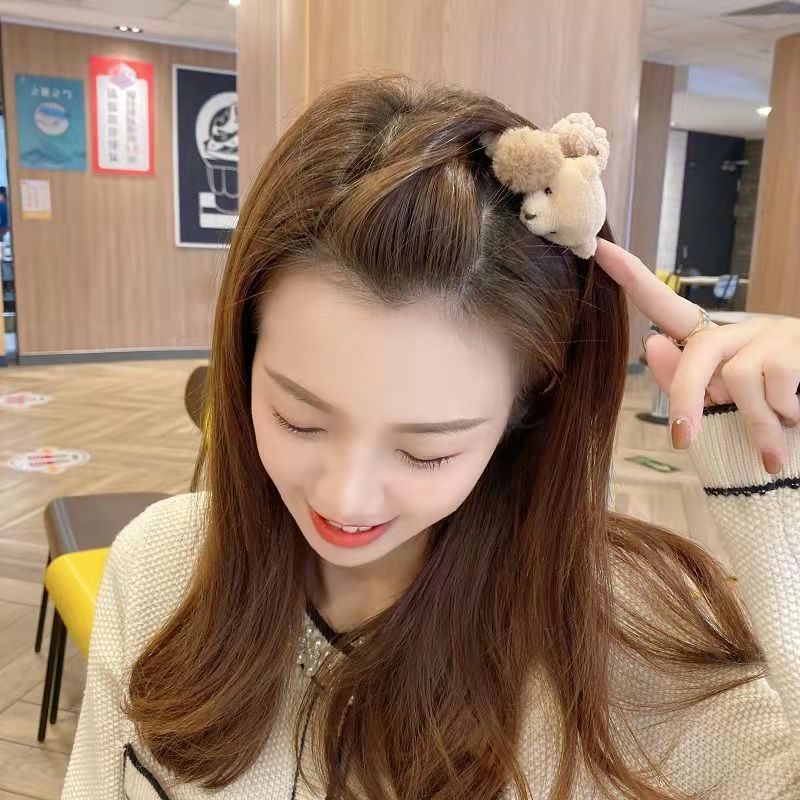 Kẹp Tóc Hình Cá Mập Phủ Lông Màu Cà Phê Phong Cách Hàn Quốc Thời Trang Thu Đông