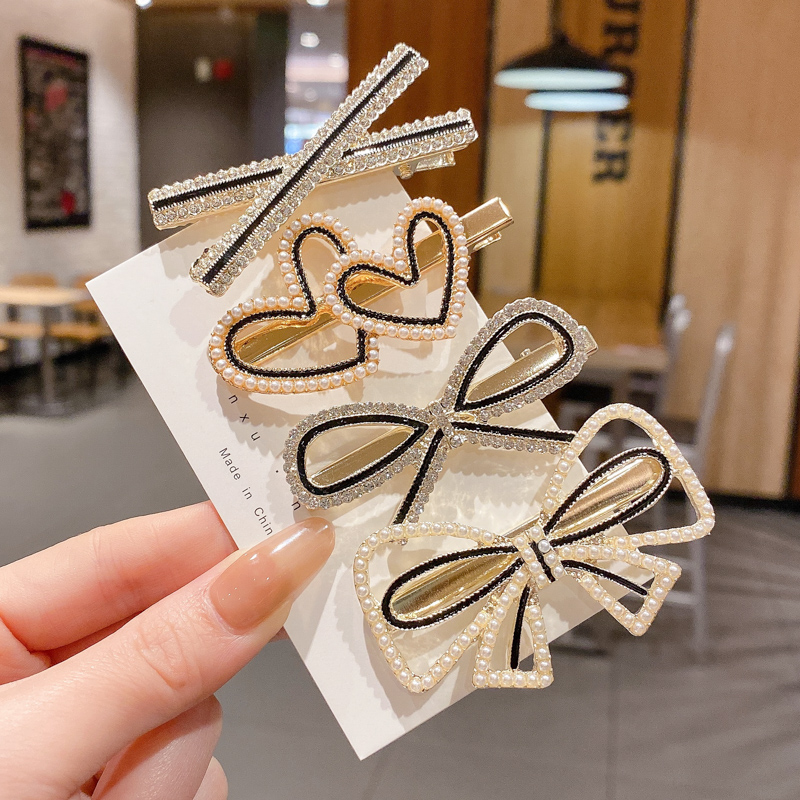 Kẹp Tóc Hình Nơ Đính Đá Và Ngọc Trai Phong Cách Hoài Cổ Hàn Quốc Xinh Xắn 2023