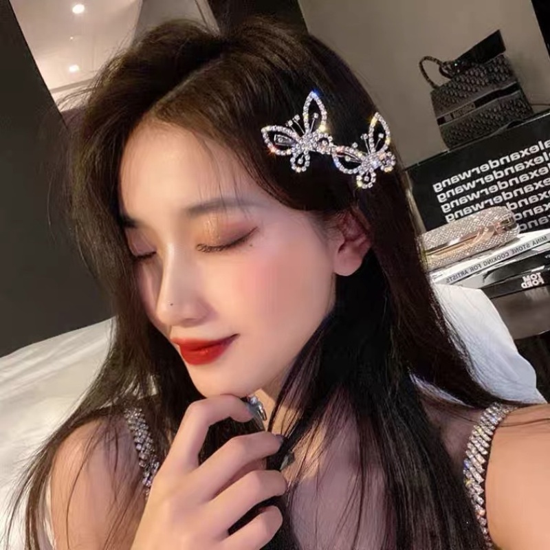 Kẹp Tóc Hai Cánh Bướm Đính Đá Lấp Lánh Phong Cách Hàn Quốc Ngọt Ngào Cá Tính Dành Cho Nữ
