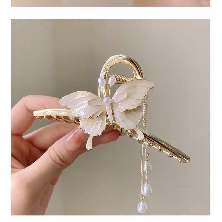 Kẹp tóc kim loại cỡ lớn hình bướm tua rua thanh lịch sang trọng tinh tế kẹp tóc sau đầu cho nữ