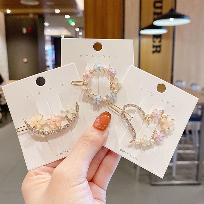 Kẹp tóc mái kiểu dáng hình học đính đá phong cách Hàn Quốc đáng yêu dành cho nữ