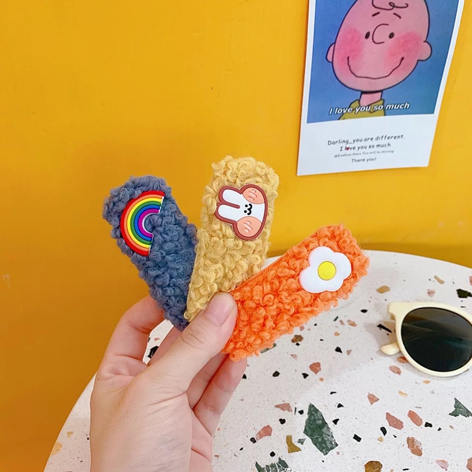 Kẹp Tóc Mái Phủ Lông Trang Trí Nhiều Màu Sắc Tùy Chọn Phong Cách Hàn Quốc Cho Bé Gái