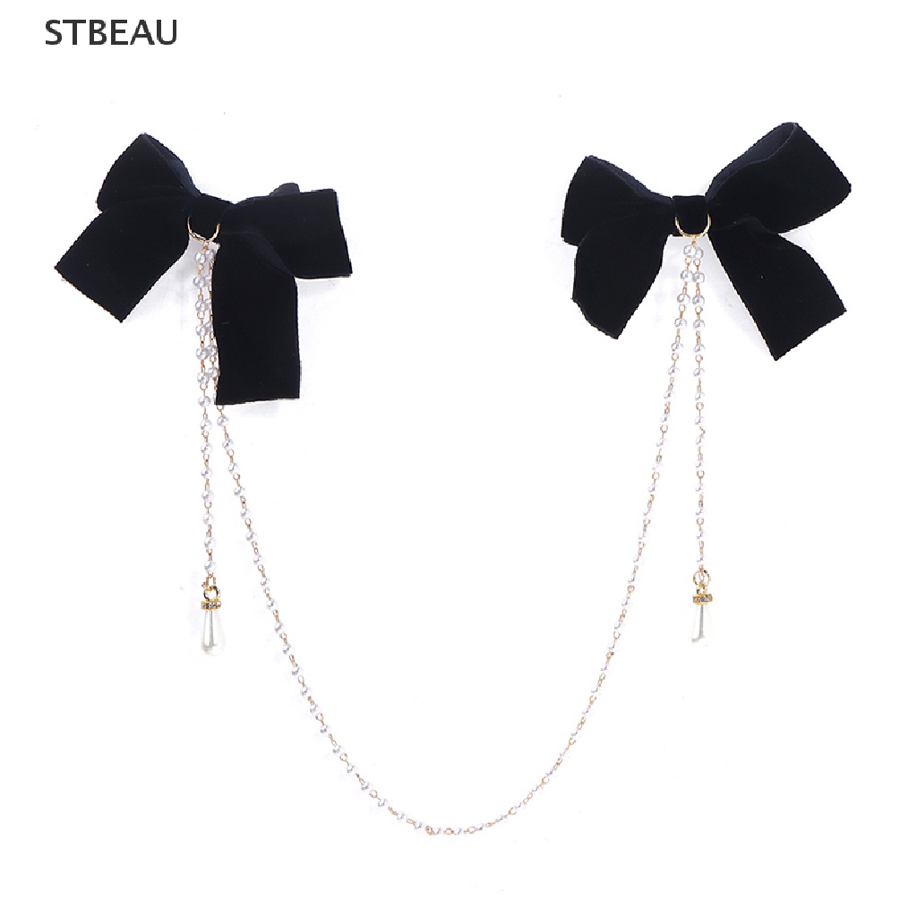 Kẹp Tóc Nơ Nhung Đính Ngọc Trai Phối Dây Xích Tua Rua Xinh Xắn Cho Bạn Gái