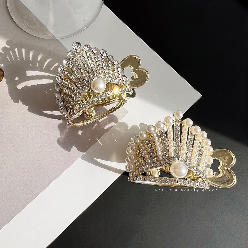 Kẹp tóc càng cua đuôi ngựa vương miện đính đá phong cách Hàn Quốc mới PK097