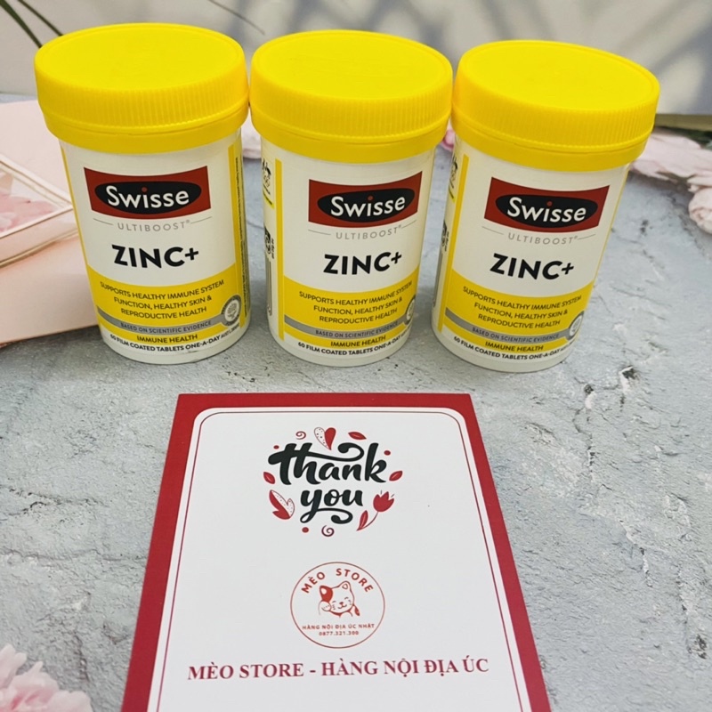 Kẽm zin c người lớn, Viên Uống Bổ Sung Kẽm Swisse Zinc+, hàng nội địa Úc, có tem chemist Thông tin sản phẩm: Hãng sản xuất: Swisse Số lượng: 60 viên Date: mới nhất Xuất xứ: Úc ‼️‼️Nếu như với trẻ em, Kẽm có tác dụng kích thích vị giác, giúp ăn ngon ngủ khoẻ, tăng cường hệ miễn dịch,👉👉 thì Kẽm đối với người lớn cũng có tác dụng y vậy kèm theo vô vàn công dụng nữa mà ít ai để ý! ✅ CÔNG DỤNG: 🔸🔸 Tăng cường khả năng #miễn_dịch. 🔸🔸 Duy trì #làn_da khỏe đẹp: Kẽm được xem là một trong những khoáng chất quan trọng đối với làn da, giúp #làm_lành_vết_thương ở da, đ.i.ề.u tr.ị mụn #trứng_cá tận gốc. 🔸🔸 Hỗ trợ sức khỏe #sinh_sản : Kẽm đóng vai trò quan trọng đối với #sức_khỏe_sinh_sản , cả ở nam giới và phụ nữ . 🔸🔸 Kẽm cần thiết cho #tinh_trùng_khỏe_mạnh và phòng #chống_vô_sinh ở nam giới . 🔸🔸 Đối với phụ nữ #mang_thai, kẽm giúp bào thai tăng trưởng và phát triển tốt. 🔸🔸Trong giai đoạn #cho_con_bú, nếu thiếu kẽm, bà mẹ ăn uống kém, mệt mỏi, giảm khả năng miễn dịch dẫn đến thiếu sữa, mất sữa … là nguyên nhân gây nên suy dinh dưỡng ở trẻ em. 🔸🔸 Giúp phòng chống các #bệnh_về_tiền_liệt_tuyến ở nam giới. 🔸🔸 Ngoài ra, kẽm còn hỗ trợ trong việc duy trì #vị_giác và #khứu_giác; giúp #chuyển_hóa protein, chất béo, vitamin A, B6 … để giúp cơ thể khỏe mạnh. ✅HDSD : 👉Người lớn ngày 1 viên, ngay sau ăn Lưu ý: Sản phẩm không phải là thuốc nên không có tác dụng thay thế thuốc chữa bệnh
