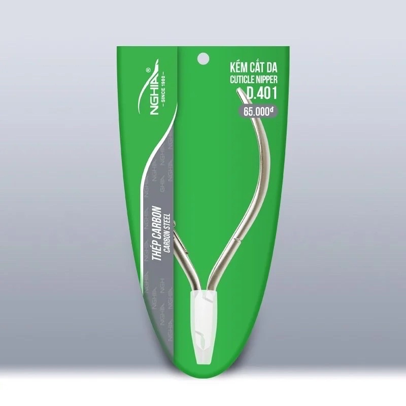 Đặc điểm nổi bật Chất liệu Thép chuyên dụng, an toàn cho người dùng. Màu sắc Trắng ngã vàng niken. Kiểu chống 1 chống. Kiểu mang 2 mang vuông. Kích thước (DxRxC mm) Full Jaw 106(+/-0.8)x48(+/-0.8)x9.0(+/-0.5) Trọng lượng 52 gr . Thiết kế Thiết kế kiểu dáng phù hợp với bàn tay người Châu Á. Lưỡi kềm sắc mỏng, tinh xảo, độ chính xác cao nên được cắt chính xác gọn gàng không làm tổn thương da khi cắt. Lưỡi kềm bén ngọt, độ bền lâu dài, không cần mài lại khi mua. Kềm cắt da D401 được mạ niken và áp dụng công nghệ xi mạ an toàn cho da tay. Sản phẩm được sản xuất theo chuẩn ISO 9001 - 2015. Thương hiệu Kềm Nghĩa Được người tiêu dùng và thợ chuyên nghiệp ưu tiên lựa chọn hơn 20 năm, đạt được nhiều giải thưởng như: Hàng Việt Nam chất lượng cao, Thương hiệu quốc gia. Loại bao bì Bao Simili Mô tả: Sản phẩm Kềm cắt da D401 của Kềm Nghĩa được xem là một trong những sự lựa chọn hàng đầu của khách hàng chuyên nghiệp. Đây là một trong những sản phẩm bán chạy nhất của Kềm Nghĩa hiện nay. Sản phẩm được chế tác từ chất liệu cao cấp, an toàn cho người sử dụng. Mũi và lưỡi kềm được thiết kế phù hợp để dễ đi vào phần da và làm sạch phía trong móng. Chống kềm và rãnh giúp tự động bung cán kềm ra khi cắt mà không cần các ngón tay đẩy giúp người dùng dễ dàng tự cắt da tại nhà. Chế độ bảo hành: Nếu sản phẩm bị lỗi kỹ thuật, quý khách có thể đổi lại tại bất kỳ đại lý nào của Kềm Nghĩa/ Showroom của Công ty. Lưu ý sử dụng: Sản phẩm chỉ dùng để cắt da tay, da chân, không dùng để cắt các vật cứng. Cách bảo quản sản phẩm : - Sau khi sử dụng lau sạch bụi bẩn bằng Acetone. - Nhúng ¼ lưỡi kềm vào dầu chống gỉ sét. - Nhỏ dầu máy vào cốt kềm để bôi trơn. - Gắn ống bảo vệ vào lưỡi kềm, để trong bao bì và cất giữ nơi khô ráo. - Tránh va chạm vào lưỡi cắt hoặc để rơi xuống đất. - Tránh xa tầm tay trẻ em. Cách phân biệt sản phẩm THẬT- GIẢ: Tất cả các sản phẩm kềm của Kềm Nghĩa đều được dập chìm chữ NGHIA sâu bên trong cổ kềm.