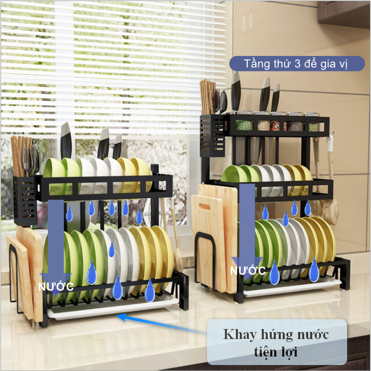 Kệ Để Chén Bát Đa Năng 4 Chân Đứng Mẫu Mới Có Khay Hứng Nước - Inox 201 Cao Cấp Sơn Tĩnh Điện Đen - Kèm Giá Để Dao, Thớt, Muỗng Đũa, 3 Móc Treo Tiện Lợi Chất liệu: Inox 201 Cao Cấp Sơn Tĩnh Điện - Chống Rỉ SétThiết kế: Sang trọng, đẹp mắt, có 4 chân đứng tiện lợiGiúp tận dụng tối đa không gian nhà bếpCó khay hứng nước tiện lợi, vệ sinhKèm giá để dao, thớt, ống để muỗng đũa Giá sản phẩm trên Tiki đã bao gồm thuế theo luật hiện hành. Bên cạnh đó, tuỳ vào loại sản phẩm, hình thức và địa chỉ giao hàng mà có thể phát sinh thêm chi phí khác như phí vận chuyển, phụ phí hàng cồng kềnh, thuế nhập khẩu (đối với đơn hàng giao từ nước ngoài có giá trị trên 1 triệu đồng).....