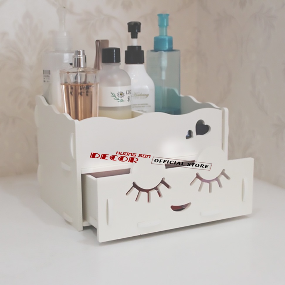 Kệ đựng mỹ phẩm mini 2 tầng gỗ Fomex PVC cao cấp họa tiết mắt mèo đáng yêu