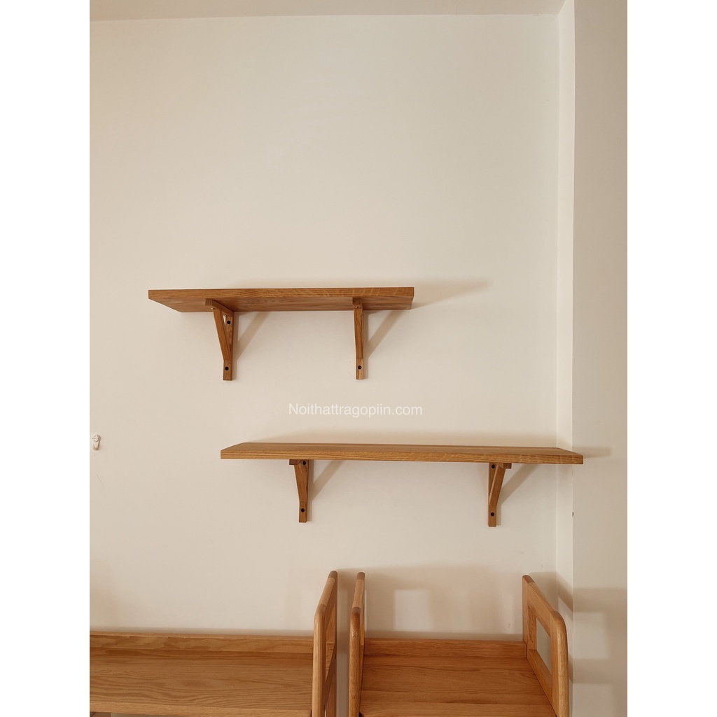 Kệ gỗ sồi nguyên khối xịn sò: - kệ bắt buộc phải khoan tường ạ - iin có 2 size như ảnh: kệ nhỏ 20x60cm, lớn 20x80cm Kệ bao gồm cả đinh ốc bắt vào tường ạ 🧡