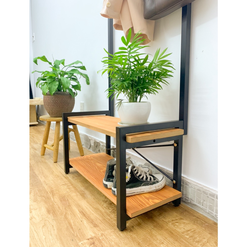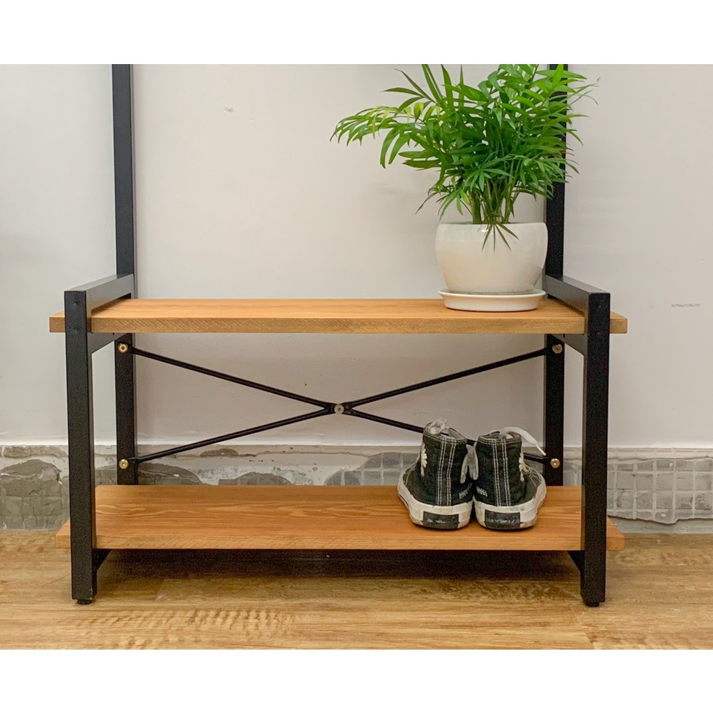 Kệ giày dép tích hợp giá treo đồ đa năng, gỗ tự nhiên vintage