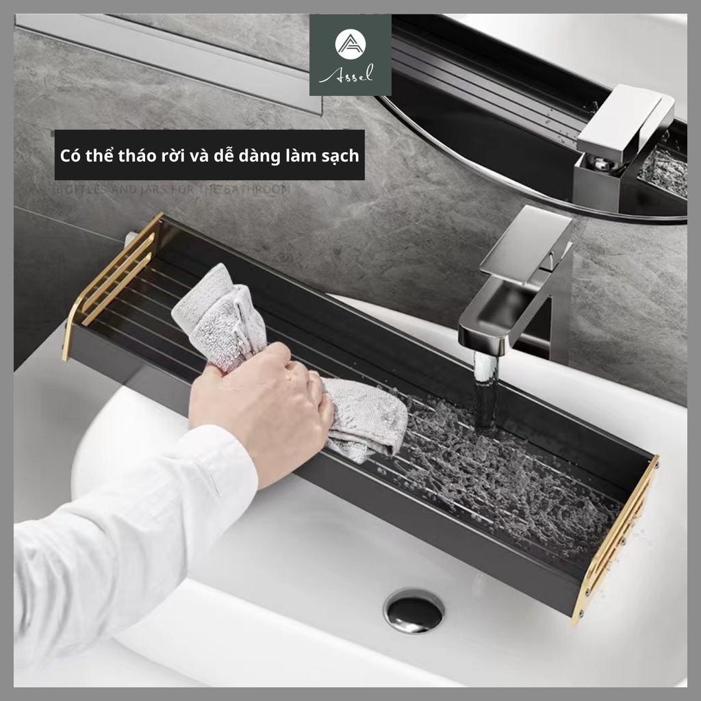 Kệ nhà tắm dán tường cao cấp phong cách sang trọng hiện đại để đồ nhà tắm, kệ treo khăn mạ vàng tiên tiến ASSEL