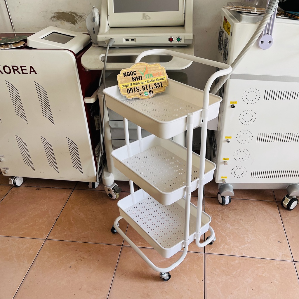 Kệ nhựa 3 tầng có bánh xe đẩy dùng trong spa, phun xăm, thẩm mỹ viện
