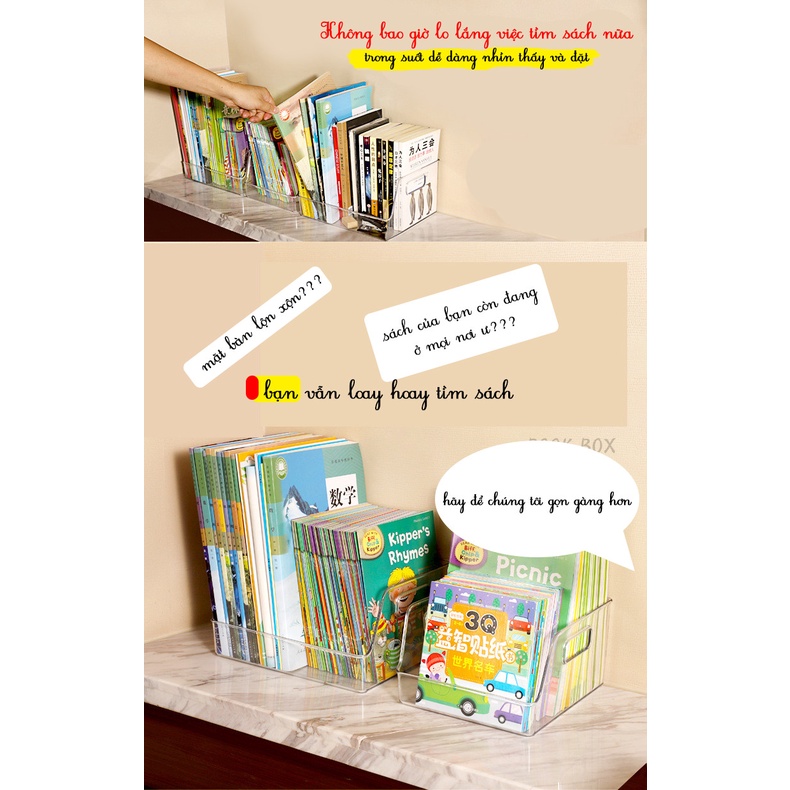 Khay Hộp Kệ Nhựa Trong Suốt Đựng Sách Bút Đồ Đa Năng Decor Trang Trí Bàn Học