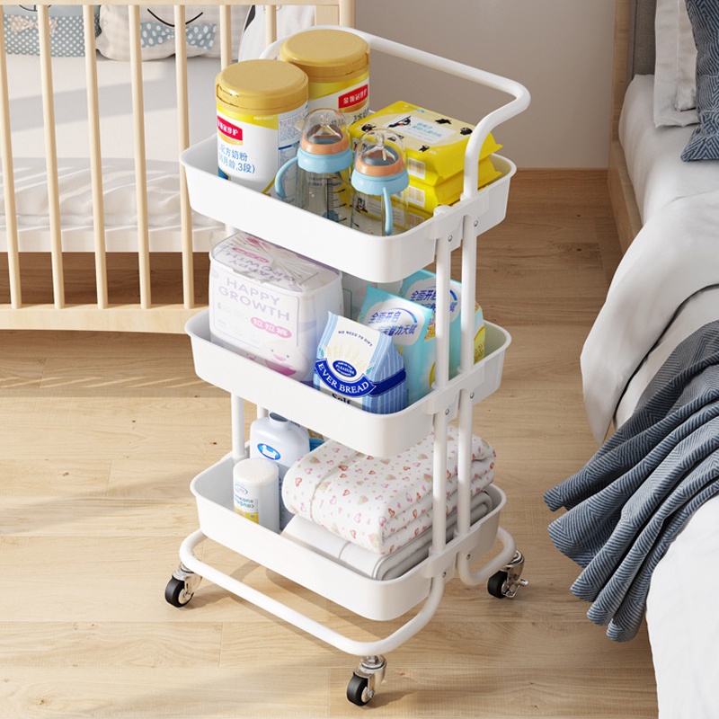 Kệ xe đẩy spa khung sắt chắc chắn, kệ đựng đồ nail khay nhựa có bánh xe 1139