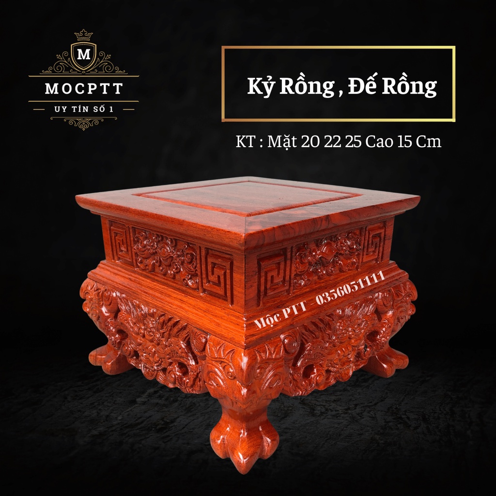 Kỷ Rồng , Đế Rồng chân quỳ gỗ Hương Đá Mặt 20 , 22 , 25 cao 15 Cm Thông Tin Sản Phẩm : + Chất liệu : Gỗ Hương Đá + Kích Thước : - Mặt 20 x 20 x 15 cm - Mặt 22 x 22 x 15 cm - Mặt 25 x 25 x 15 cm + Trạm khắc hình ảnh Con Rồng - Chân quỳ triện Rồng cực x