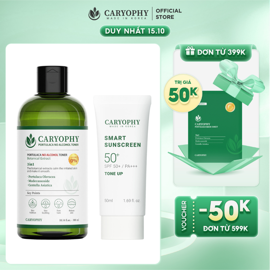 Combo kem chống nắng Smart Sunscreen Moist 50ml và 5 mặt nạ dưỡng da Caryophy