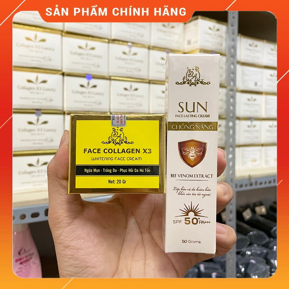 Combo Kem Face Collagen X3 + Kem chống nắng nọc ong Colagen X3 Mỹ phẩm Đông Anh