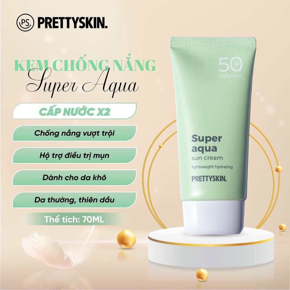Kem Chống Nắng Pretty Skin Sun Cream SPF 50+ PA++++ 70ml - Xuất xứ: Hàn Quốc - Thương hiệu: Prettyskin - Dung tích: 70ml ------------------------------------------------------ 1./ Kem Chống Nắng Nosebum Pretty Skin 70ml - Tím: kiềm dầu siêu tốt , lên tông trắng Hồng - Kiềm dầu, nâng tone giúp da trắng hồng tự nhiên - Giảm viêm và dưỡng ẩm hiệu quả - Bảo vệ da dưới tác hại của tia UVA/UVB. - Giảm tối thiếu tình trạng khô căng khi tiếp xúc với tia UV trong 1 thời gian dài - Hạn chế tình trạng cháy nắng bỏng rát, sạm nám và đứt gãy sợi collagen khiến da nhanh lão hóa. - Lành tính phù hợp cho da dầu và da nhạy cảm. 2./ Kem Chống Nắng Nâng Tone Pretty Skin Pink Tone Up 70ml - Hồng - Chống nắng, nâng tone trắng hồng tự nhiên - Không gây bết rít và bí da - Bảo vệ da khỏi tia UV, tia hồng ngoại, ánh sáng xanh và các tác nhân gây hại từ môi trường - Làm dịu kích ứng khi ánh nắng trực tiếp chiếu lên da - Phù hợp với mọi loại da 3./Kem Chống Nắng Cấp Nước Pretty Skin Super Aqua 70ml - Xanh Lá - Giảm tiết dầu và da luôn căng bóng, mềm mịn - SPF 50+ PA++++ giúp ngăn ngừa tia UV và các tác hại khác từ môi trường bên ngoài - Nâng tone nhẹ nhàng cho da trắng mịn tự nhiên khi ra ngoài - Có thể sử dụng như lớp kem lót cấp ẩm trước khi make-up - Phù hợp da khô, da hỗn hợp thiên dầu, da thiếu nước 4./ Kem Chống Nắng Waterproof Pretty Skin 70ml - Vàng - Siêu lâu trôi phù hợp đi biển và vận động ngoài trời, chơi thể thao - Kiềm dầu tốt, không nâng tone, có thể làm lớp dưỡng ẩm trước khi makeup - Bảo vệ da khỏi tia UV, tia hồng ngoại hiệu quả - Phù hợp với mọi loại da HƯỚNG DẪN SỬ DỤNG Bước 1: Làm sạch da mặt và dưỡng ẩm cho da Bước 2: Lấy 1 lượng Kem Chống Nắng Nâng Tone Cấp Nước Pretty Skin vừa đủ chấm lên 5 điểm trán, 2 má, mũi và cằm rồi vỗ nhẹ cho kem thẩm thấu hết vào da. Bước 3: Nếu hoạt động ngoài trời thì bạn nên thoa nhắc lại sau mỗi 3 đến 4 giờ đồng hồ. Kem Chống Nắng Pretty Skin là kem chống nắng vật lý nên sau khi thoa lên da bạn có thể ra ngoài luôn mà không cần chờ đợi như kem chống nắng hóa học. #kemchongnang #prettyskin #girlcosmetic