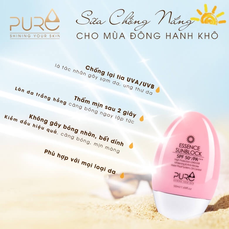 Kem Chống Nắng Pure Essence Sunblock Hàn Quốc SPF 50+ Cấp Ẩm Dưỡng Da Chống Nắng Cả Ngày