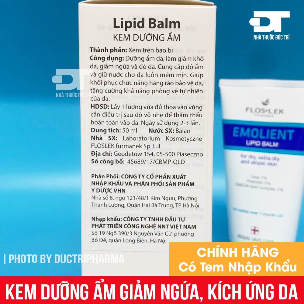 Kem Dưỡng Ẩm Floslek Emolient Lipid Balm 50ml - Giữ Nước Cho Da, Giảm Ngứa, Kích Ứng Cho Da