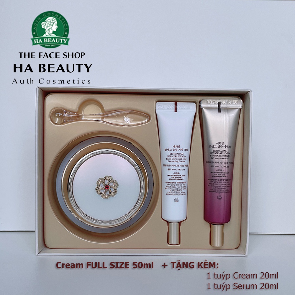 Kem dưỡng ẩm trắng da làm mờ nám tàn nhang The Face Shop Yehwadam Hwansaenggo Snow Glow Dark Spot Correcting Cream 50ml - Thương hiệu: The Face Shop - Brand: Yehwadam - Xuất xứ: Hàn Quốc - Dung tích set bao gồm: Kem 50ml ➕ (Tặng kèm: Kem 20ml + Serum 20ml) - Loại da: