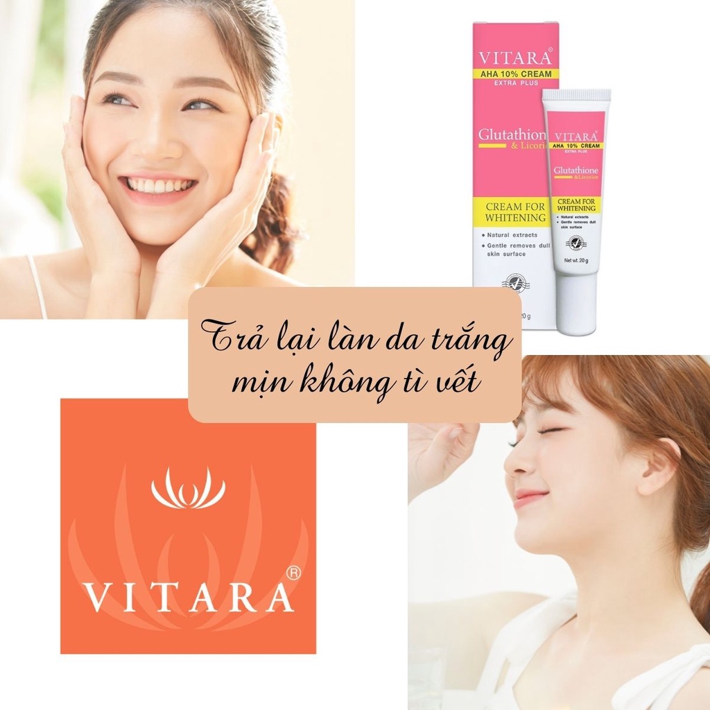 Kem dưỡng da mặt Vitara AHA 10% Cream Extra Plus dưỡng trắng cấp ẩm mờ nám giảm mụn 20g chính hãng thái lan