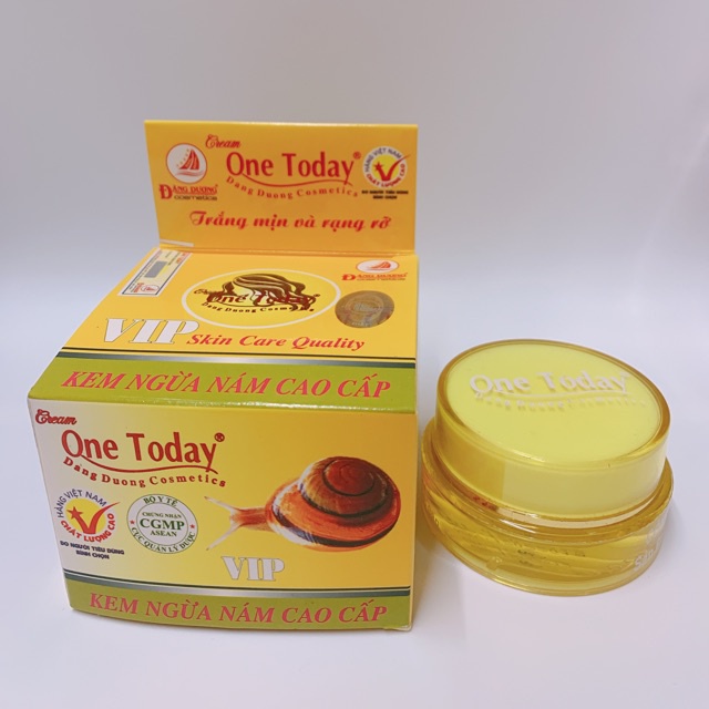 Kem dưỡng trắng da mặt ngừa nám cao cấp One Today ốc sên 15g Công dụng: - Sự kết hợp của các thành phần giàu dưỡng chất như tinh chất ốc sên, sữa dê...cùng với các Vitamin E, B3 và C giúp nuôi dưỡng, giữ ẩm cho làn da hiệu quả. - hoạt chất dưỡng trắng giúp làm giảm c
