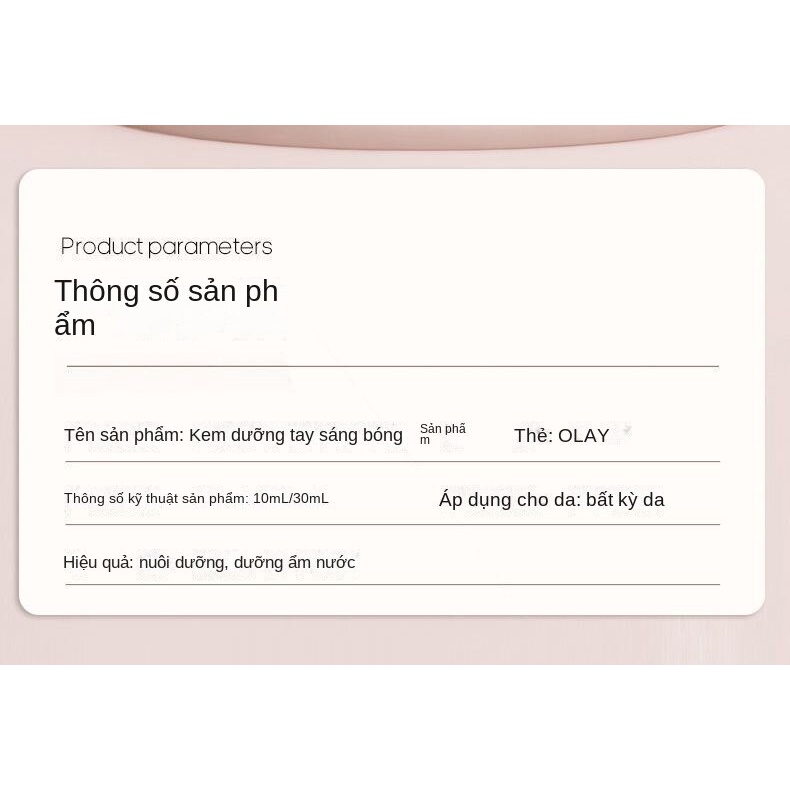 Thương hiệu: Olay Chức năng: dưỡng ẩm Đặc điểm kỹ thuật loại: sản phẩm đơn lẻ thông thường Xuất xứ: Trung Quốc đại lục Nơi giao hàng: Tỉnh Quảng Đông Cho dù nó là một loại mỹ phẩm chuyên dụng: Không