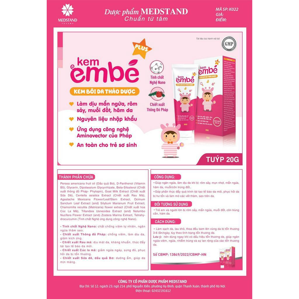 Kem Em Bé dưỡng ẩm da mờ sẹo ngừa thâm viêm da cơ địa muỗi đốt rôm sảy chàm sữa mẩn ngứa mát da thảo dược kem hăm 20/15g