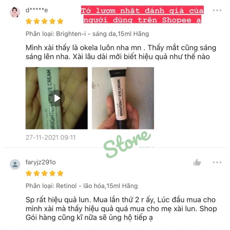 Kem mắt chống lão hóa The INKEY List Retinol Eye Cream 15ml Nhãn hiệu: The Inkey List Loại sản phẩm: KEM MẮT Dung tích: 15ml Xuất sứ: Mỹ Hướng dẫn sử dụng: Bước 1: làm sạch và cân bằng da với nước hoa hồng, tinh chất. Bước 2: lấy lượng kem dưỡng mắt vừa đủ ra tay, thoa và massage nhẹ nhàng vùng da quanh mắt. Bước 3: tiếp tục thực hiện bước kem dưỡng da như thông thường. Dùng 1 – 2 lần/tuần, vào buổi tối, có thể tăng dần tùy theo khả năng chịu đựng của làn da. #kemmat #theinkey