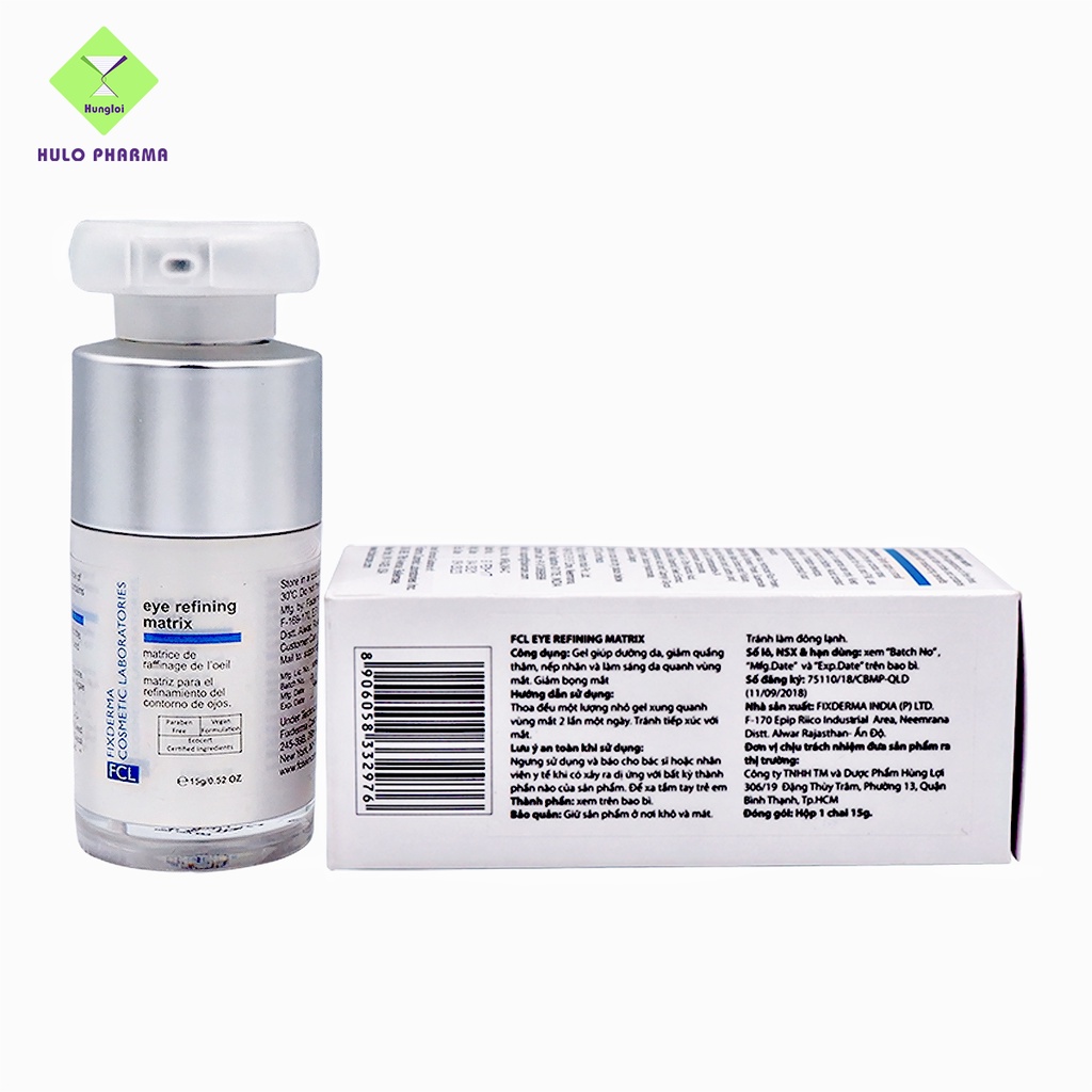 FCL EYE REFINING MATRIX là sản phẩm gel giảm quầng thâm, nếp nhăn, bọng mắt. CÔNG DỤNG CHÍNH - Gel giúp dưỡng da, giảm quầng thâm, nếp nhăn - Làm sáng da quanh vùng mắt - Giảm bọng mắt - Sử dụng được cho tất cả các loại da ĐẶC TÍNH NỔI BẬT - Hoàn thiện và nuôi dưỡ